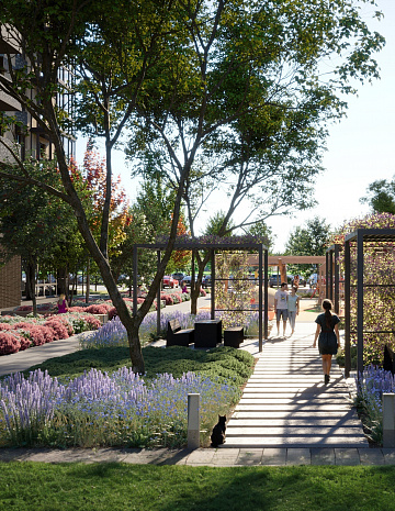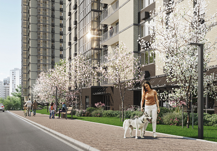 Многообразные зоны для прогулок и отдыха, масштабное озеленение – более 2 000 деревьев, ландшафтный дизайн
